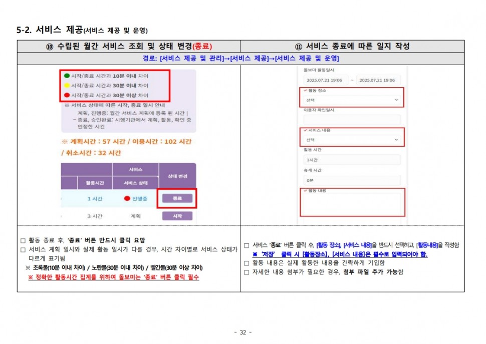 [양육지원] (양식) 시스템 시작/종료 30분 이상 차이 사유서