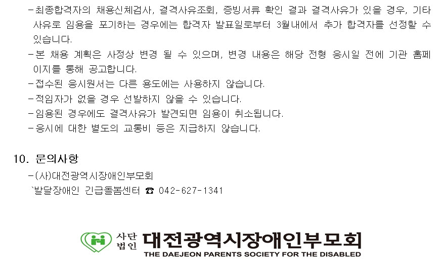 [긴급돌봄팀] (~ 3. 9.)대전발달장애인긴급돌봄센터 직원채용 공고