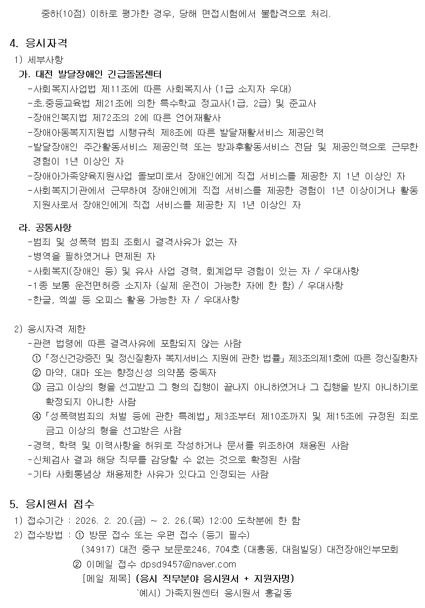 [긴급돌봄팀] (~ 2. 26.)대전발달장애인긴급돌봄센터 직원채용 공고