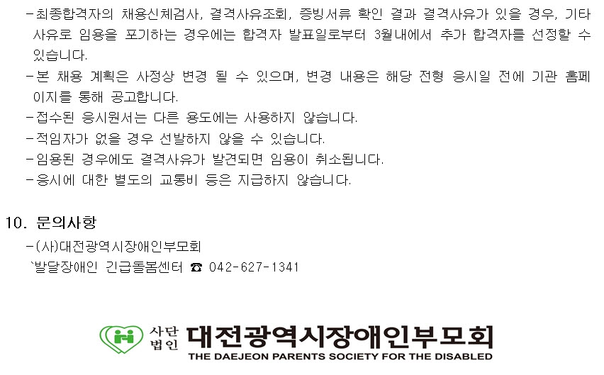 [긴급돌봄팀] (~ 3. 9.)대전발달장애인긴급돌봄센터 직원채용 공고