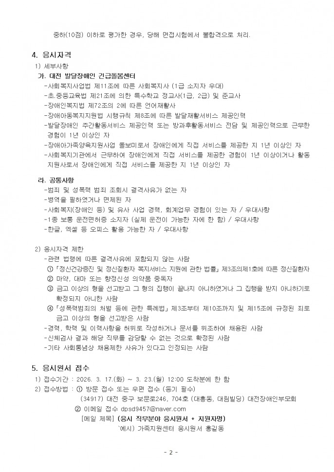 [긴급돌봄팀] (~ 3. 30.)대전발달장애인긴급돌봄센터 직원채용 공고