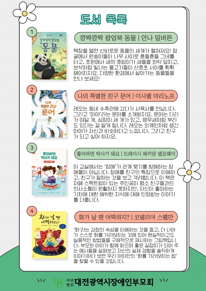 [장애아가족 양육지원사업] 휴식지원프로그램 교육제공-다독다독(多讀) 마음톡톡(1회기)