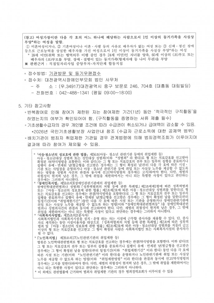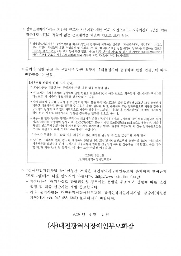 2026년도 장애인복지일자리(참여형) 참여자 추가 모집공고