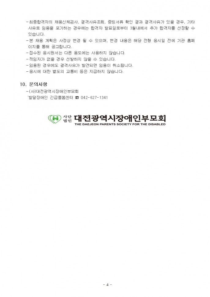 [긴급돌봄팀] (~ 5. 11.)대전발달장애인긴급돌봄센터 직원채용 공고