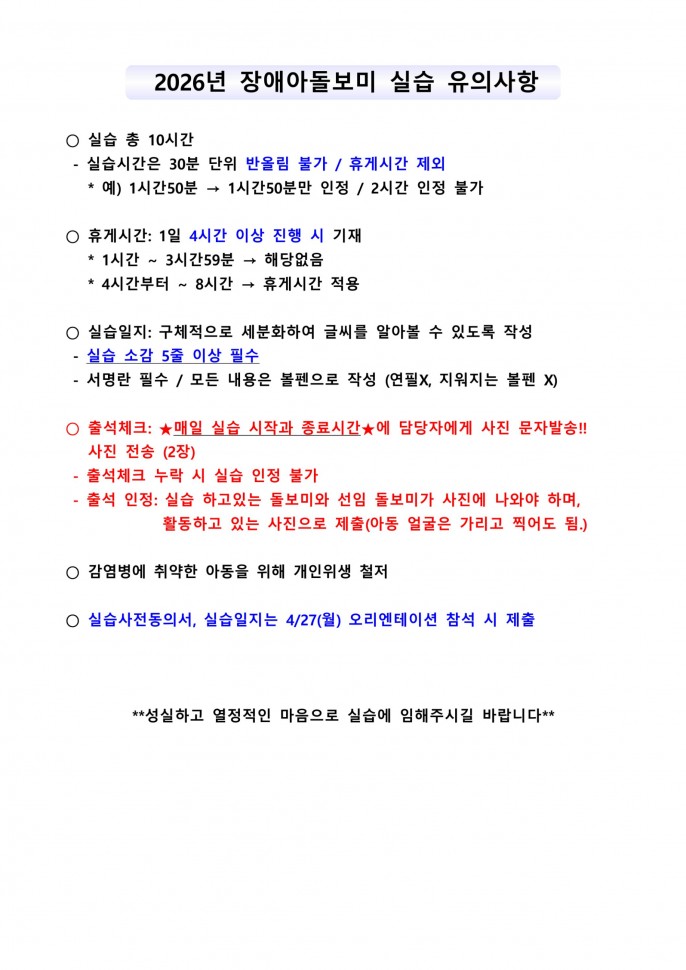 [양육지원] 2026년 1차 장애아돌보미 양성교육 돌보미 실습 서식(이용자 가정…