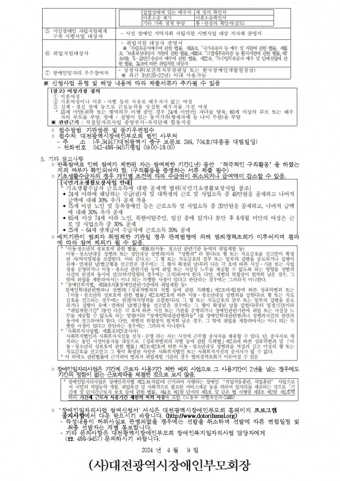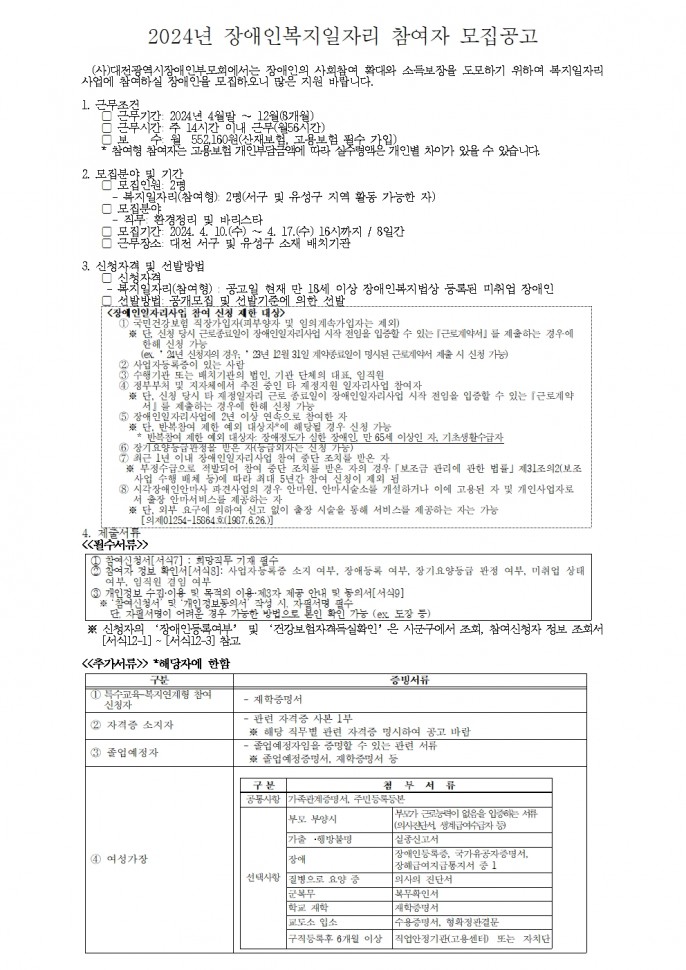 2024년 장애인복지일자리사업 2차 추가 모집 공고