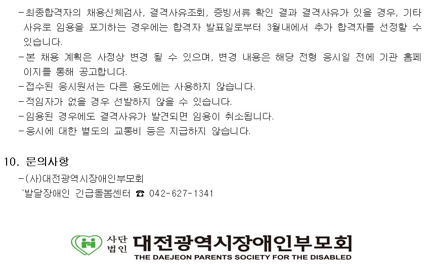 [긴급돌봄팀] (~ 11. 10.)대전발달장애인긴급돌봄센터 직원채용 공고
