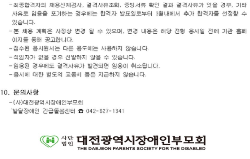 [미분류] 대전발달장애인긴급돌봄센터 직원채용 1차 합격자 발표